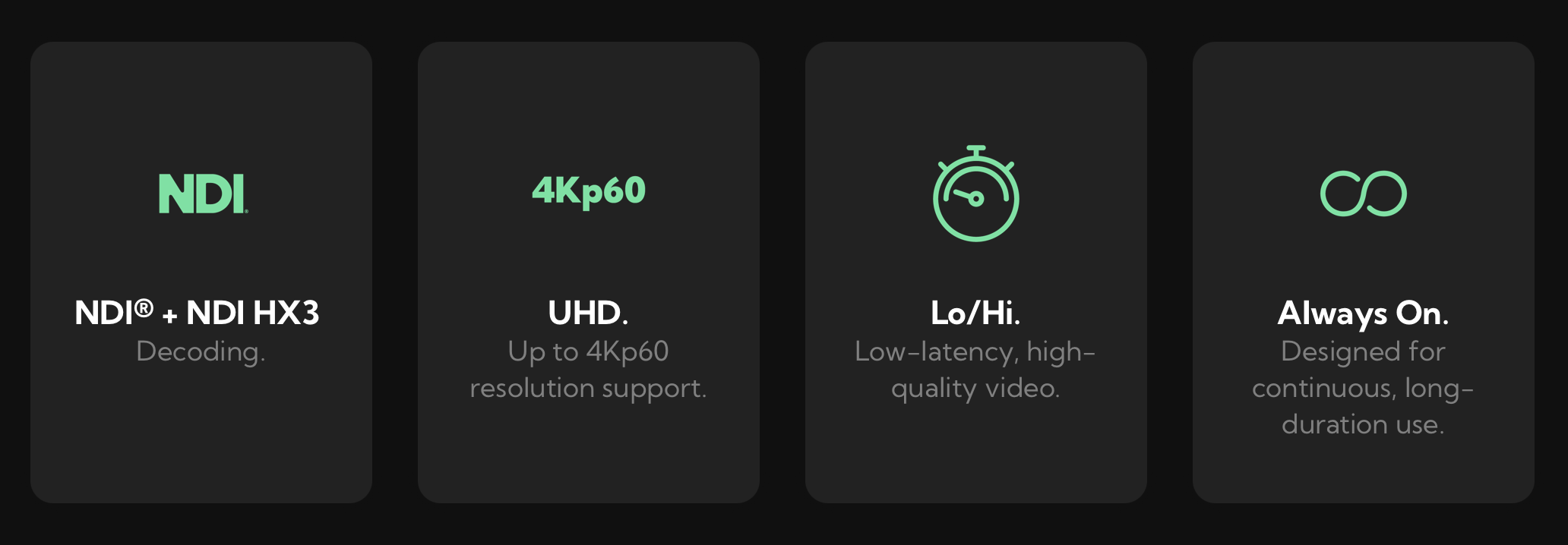 Supporta NDI®, NDI® HX3 e i moderni formati IP fino a 4Kp60 (NDI® HX), offrendo una riproduzione fluida e stabile senza compromessi.
